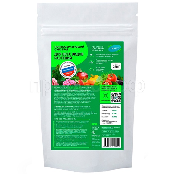 Подходит для применения как в открытом грунте, так и в теплицах. Регулярное использование Цимус Универсальный помогает восстановить плодородие почвы и улучшить её структуру.